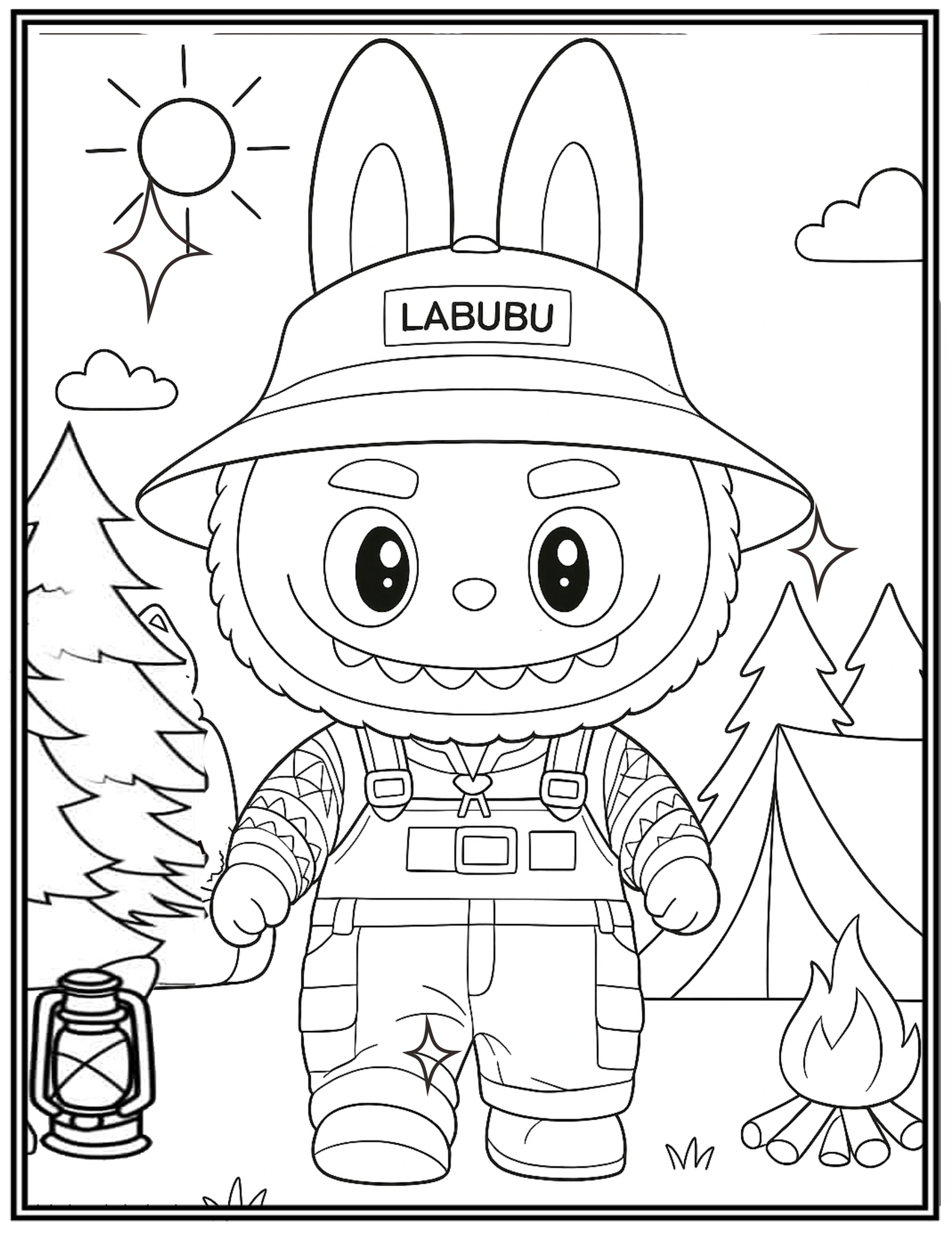 Labubu Camping Adventure in The Great Outdoors Coloring Pages