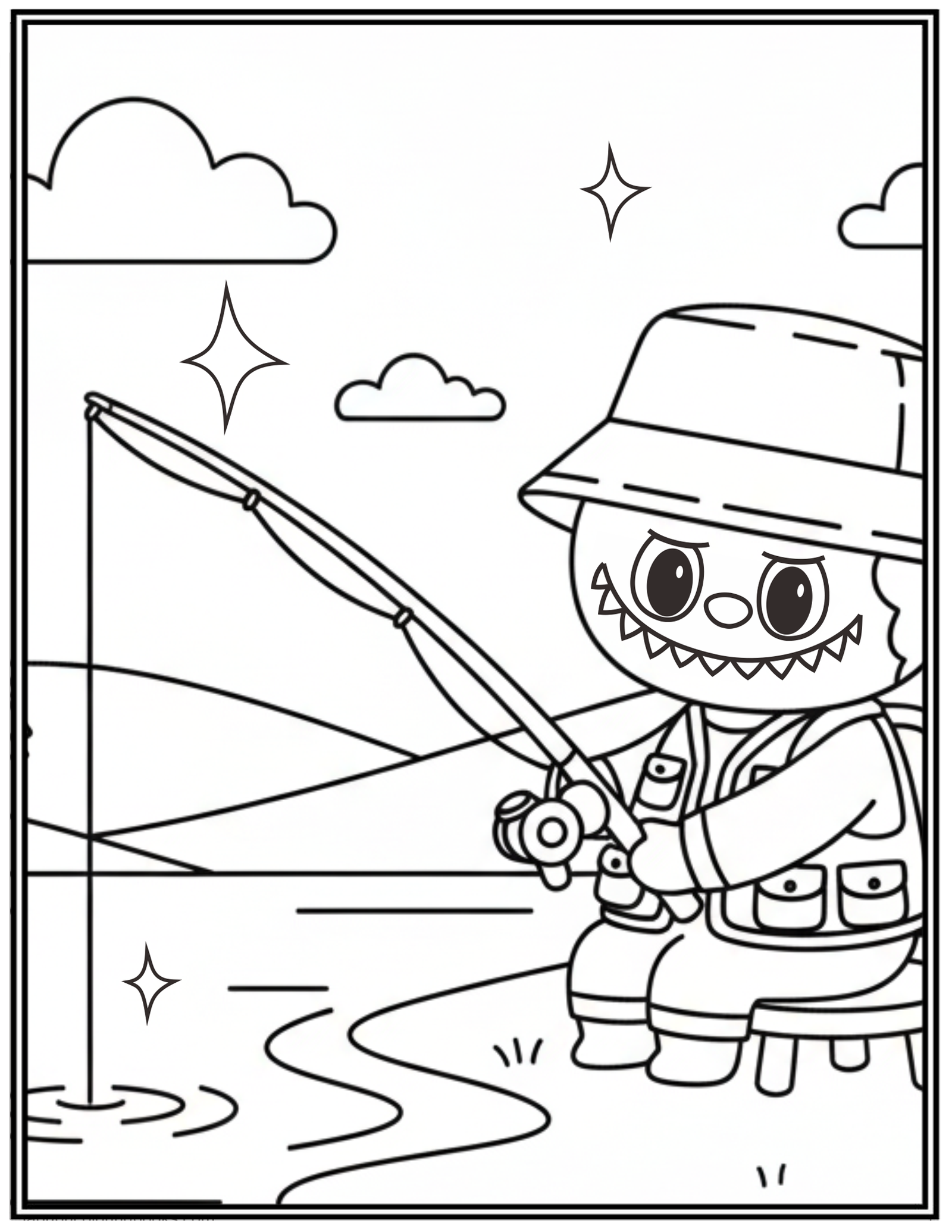 Labubu Fishing Coloring Pages