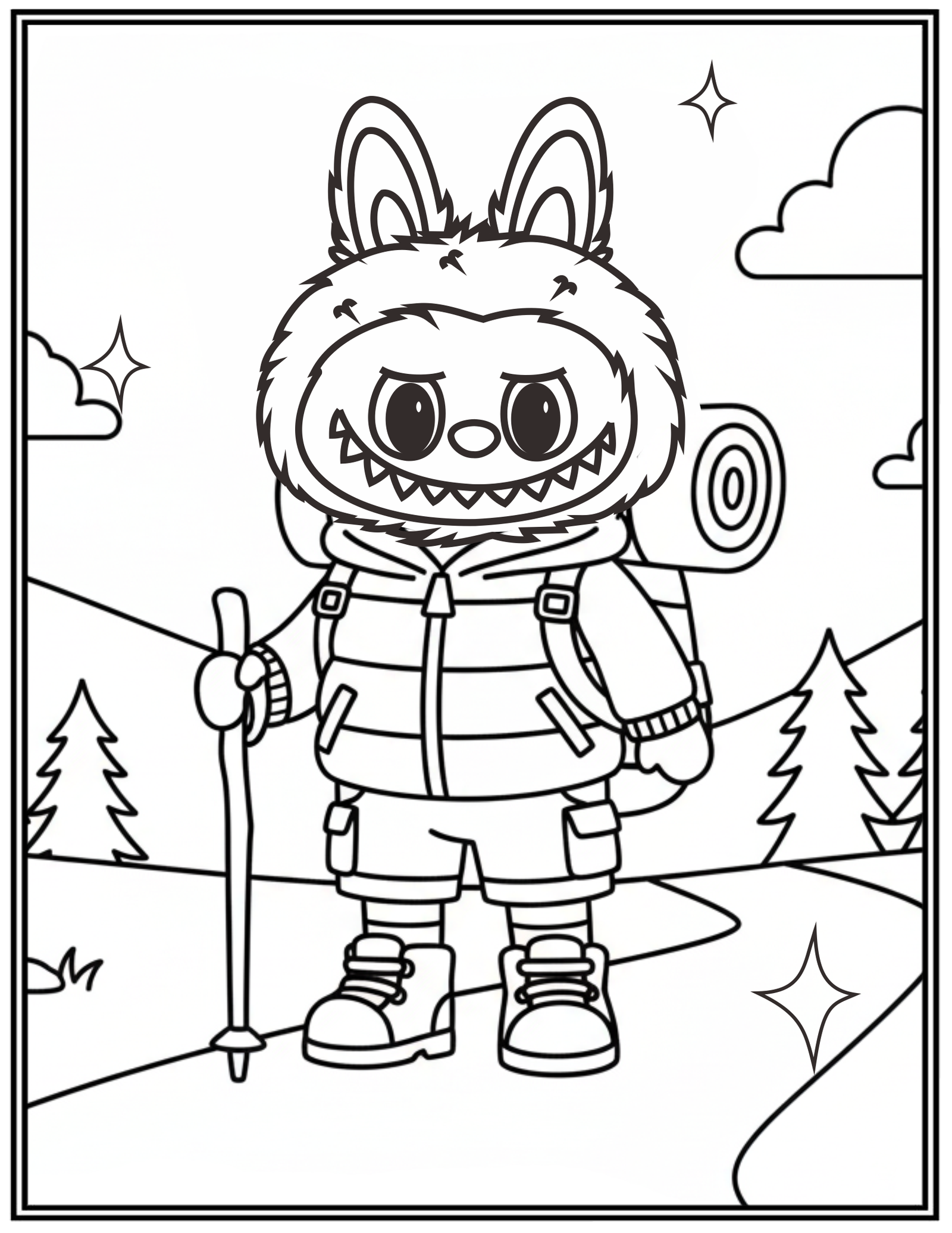Labubu Fun Hiking Outdoor Adventure In Nature Coloring Pages