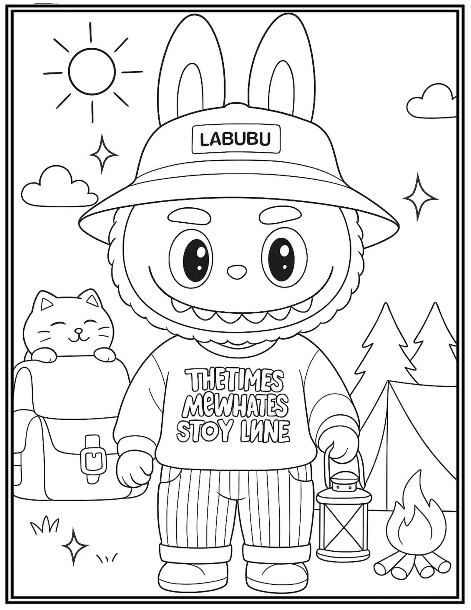 Labubu Happily Camping Outdoors Coloring Pages