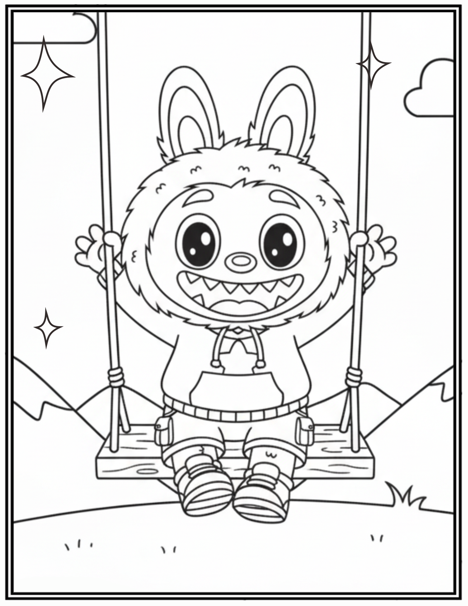 Labubu Happy Playing On A Swing Outdoors Coloring Pages