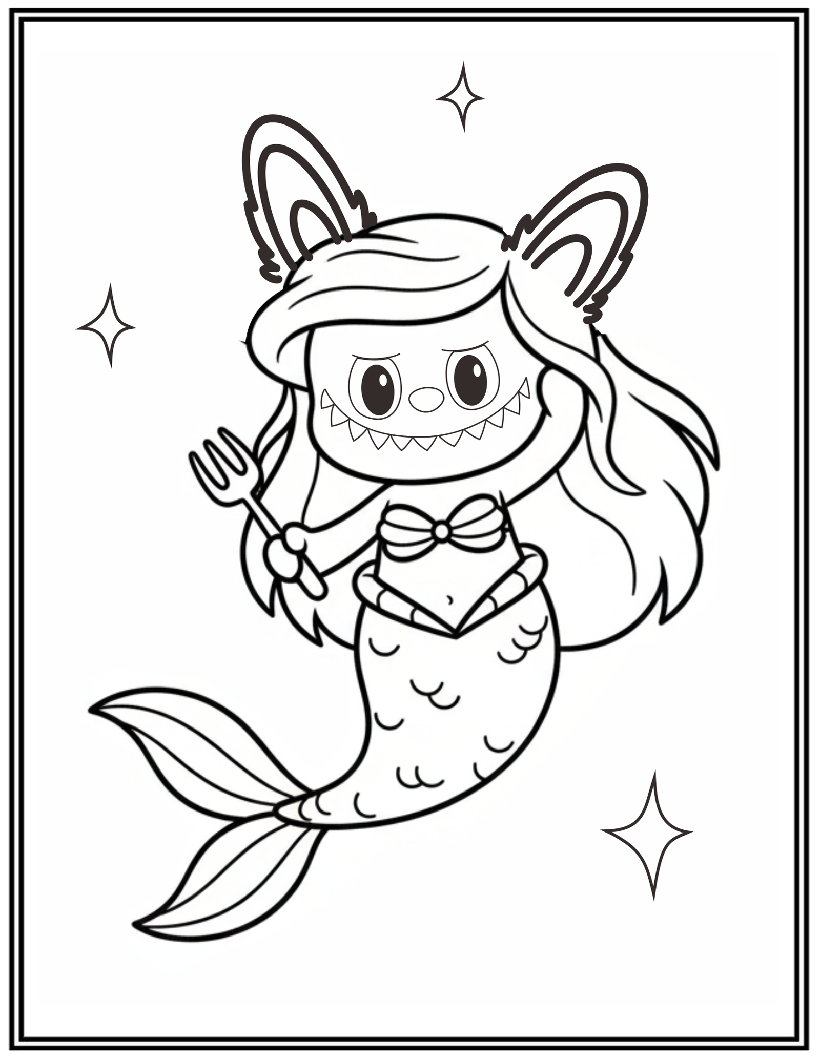 Labubu Mermaid Disney Princess Coloring Pages