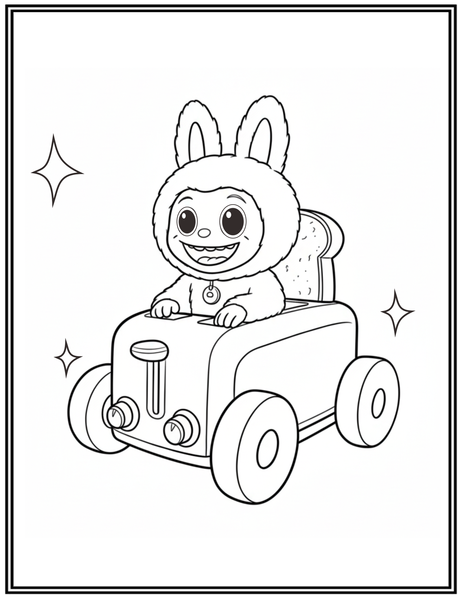 Labubu Riding A Cute Car Coloring Pages